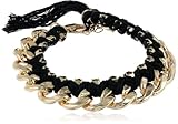 Black Threaded Chain Crystal Accents Gold Tone Link Bracelet, 7"+2" Extender