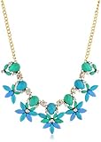 Blue and Turquoise Abstract Floral Pendant Necklace, 19"