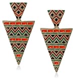 Double Etched Triangle Posted Shiny Gold and Orange Earrings