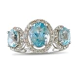 Large Over 2ct Blue Topaz and Diamond Ring in Sterling Silver