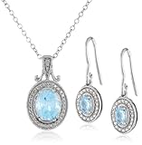 Sterling Silver Blue Topaz Earrings and Pendant Necklace Jewelry Set