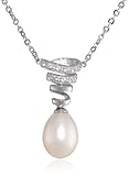 Sterling Silver Cable Chain on Swirl White Freshwater Cultured Drop Pearl and White Topaz Necklace (9-9.5mm),17"